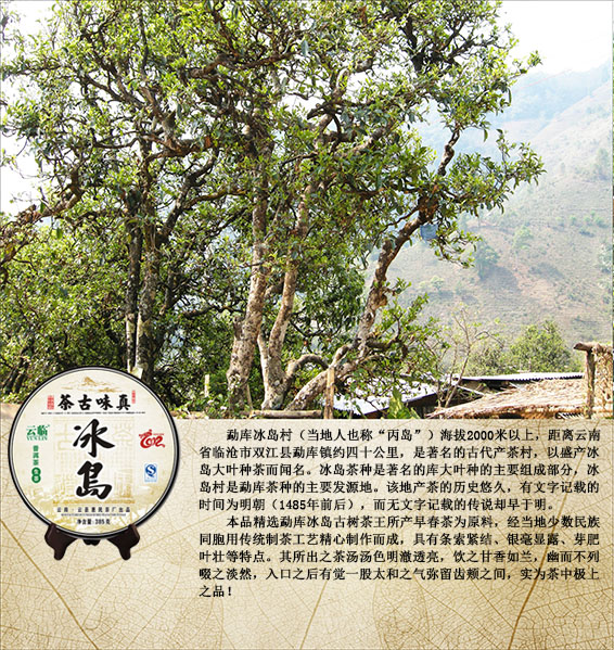 勐库冰岛村(当地人也称"丙岛")海拔2000米以上,距离云南省临沧市双江县勐库镇约四十公里,是著名的古